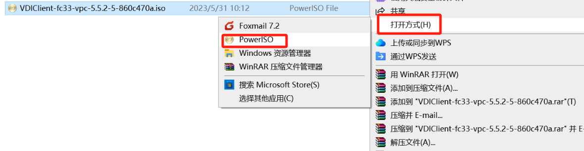 2、右鍵選擇VDI客戶端安裝包,選擇打開方式,選擇寫鏡像工具。
