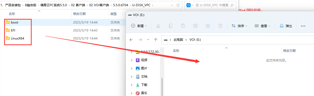 1、啟動(dòng)U盤制作:將如下三個(gè)文件夾放入FAT32的u盤根目錄下;注意版本。