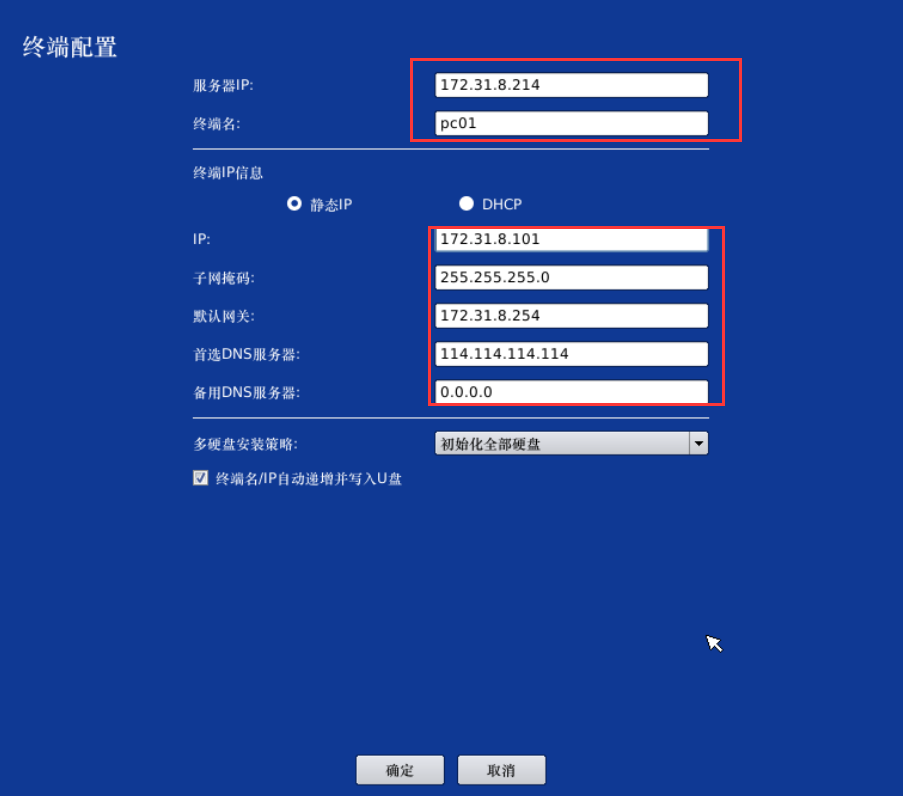 4、設(shè)置對(duì)應(yīng)服務(wù)器IP及終端信息。