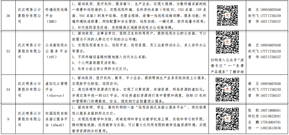 2020年2月27日湖北省經濟和信息化廳公示了 《省經信廳辦公室關于公布第三批免費云產品和服務目錄的通知》,其中 噢易云的校園遠程自助桌面云服務(eDaaS)、終端遠程運維平臺(DMS)、 云桌面 遠程辦公服務平臺(vPC)、虛擬化云管理平臺(vServer)四款產品在全國數(shù)千家優(yōu)秀企業(yè)中脫穎而出,成功入選!