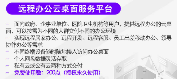 1) 面向政府、企事業(yè)單位、醫(yī)院衛(wèi)生機構等用戶,提供遠程辦公的云桌面,可以按需為不同的人群交付不同的辦公環(huán)境;