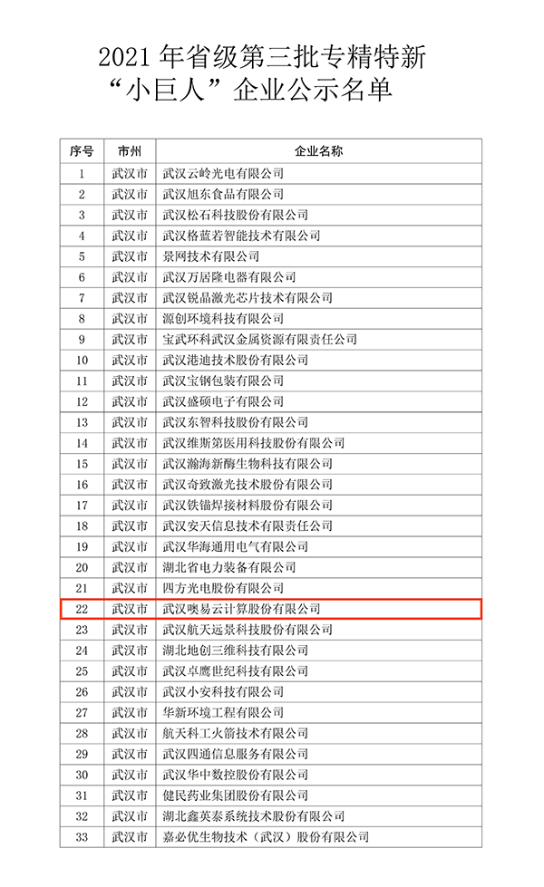 噢易云入選2021年湖北省第三批專精特新“小巨人”企業(yè)名單!