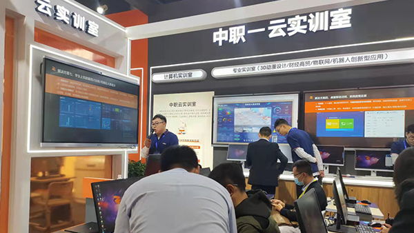 智慧物聯(lián)教室現(xiàn)場互動(dòng)講解區(qū)(圖) (一批又一批老師至智慧物聯(lián)教室現(xiàn)場互動(dòng)交流,了解新一代信息技術(shù)在教室基礎(chǔ)設(shè)施中的應(yīng)用) 三、云實(shí)訓(xùn)室,提供更便捷的實(shí)訓(xùn)教學(xué)體驗(yàn) 職業(yè)教育是國民教育體系和人力資源開發(fā)的重要組成部分,肩負(fù)著培養(yǎng)多樣化人才、傳承技術(shù)技能、促進(jìn)就業(yè)創(chuàng)業(yè)的重要職責(zé)。大力提升中等職業(yè)實(shí)訓(xùn)教學(xué)質(zhì)量,建設(shè)高水平專業(yè)化中職云實(shí)訓(xùn)室大有可為。 噢易中職云實(shí)訓(xùn)室方案采用VOI架構(gòu)云桌面,實(shí)現(xiàn)云端管控,計(jì)算轉(zhuǎn)移,應(yīng)用于計(jì)算機(jī)公共實(shí)訓(xùn)室、圖形設(shè)計(jì)類實(shí)訓(xùn)室、財(cái)經(jīng)商貿(mào)類實(shí)訓(xùn)室、創(chuàng)新型應(yīng)用(物聯(lián)網(wǎng)、工業(yè)機(jī)器人、虛擬仿真、虛擬現(xiàn)實(shí))實(shí)訓(xùn)室等環(huán)境,協(xié)助構(gòu)建理實(shí)?體化教學(xué)場景,為師生提供流暢的實(shí)驗(yàn)實(shí)訓(xùn)使用體驗(yàn)。