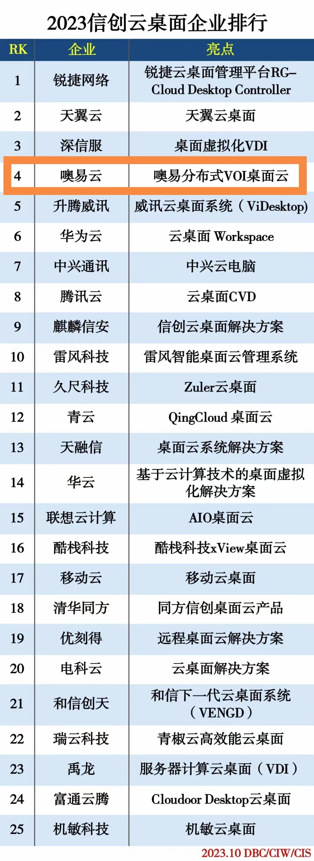 信創(chuàng)實(shí)力又雙叒受認(rèn)可,噢易云榮登2023信創(chuàng)云桌面企業(yè)排行TOP4