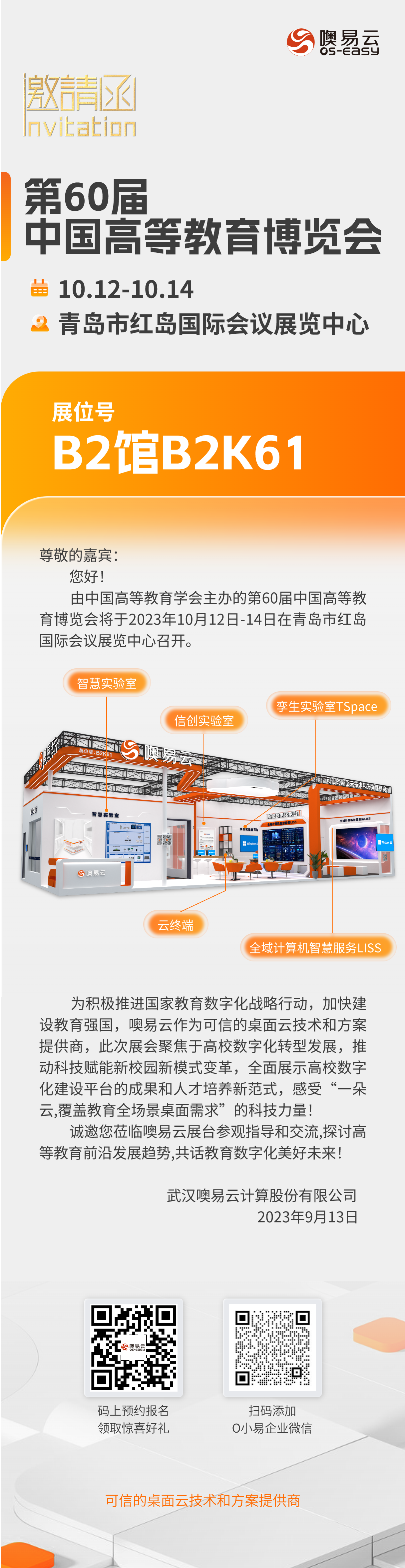 噢易云誠(chéng)邀您蒞臨第60屆中國(guó)高等教育博覽會(huì),10月12日青島見(jiàn)!
