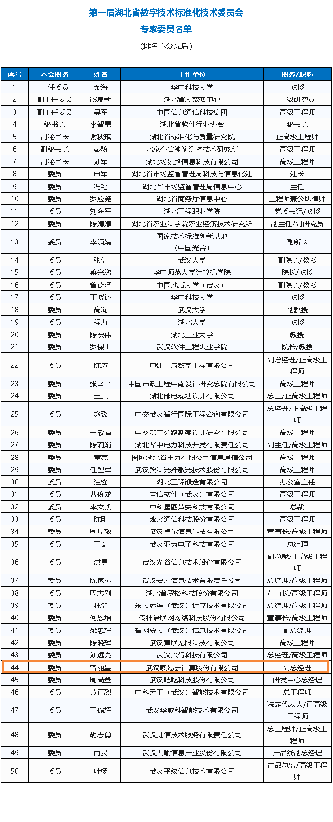 為推動電子信息和數(shù)字技術(shù)高質(zhì)量發(fā)展,進(jìn)一步完善電子信息領(lǐng)域和數(shù)字技術(shù)領(lǐng)域標(biāo)準(zhǔn)化技術(shù)組織體系,省市場監(jiān)管局決定批準(zhǔn)成立湖北省電子信息標(biāo)準(zhǔn)化技術(shù)委員會、湖北省數(shù)字技術(shù)標(biāo)準(zhǔn)化技術(shù)委員會, 噢易云副總裁曾麗星入選第一屆湖北省數(shù)字技術(shù)標(biāo)準(zhǔn)化技術(shù)委員會專家委員,現(xiàn)予公告。