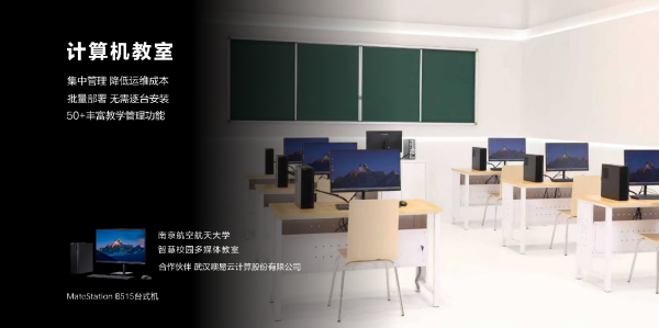在項(xiàng)目合作方面,噢易云與華為聯(lián)合打造南京航空航天大學(xué)多媒體教室升級(jí)改造項(xiàng)目,已成為教育行業(yè)樣板典型,該項(xiàng)目基于華為B515商用臺(tái)式機(jī),實(shí)現(xiàn)批量部署、集中管理,提升教學(xué)管控效率的同時(shí),顯著降低運(yùn)維成本。同時(shí),雙方已聯(lián)合助力貴州商學(xué)院、克拉瑪依市克拉瑪依區(qū)教育局、廣東省珠海市香洲區(qū)教育局等20余所學(xué)校建設(shè)新型智慧校園,助推學(xué)校信息化建設(shè)全面提升。