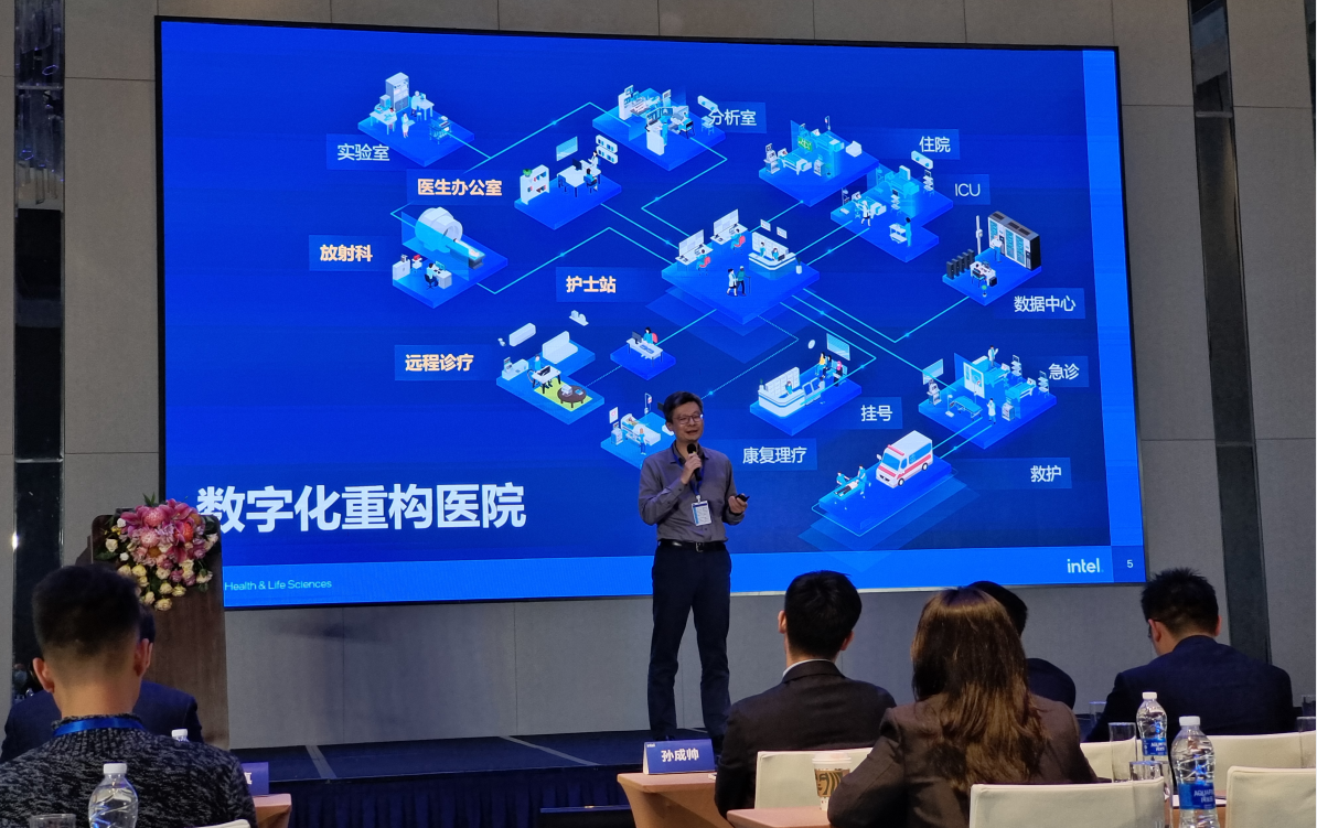 會(huì)議伊始,英特爾中國(guó)區(qū)物聯(lián)網(wǎng)及渠道數(shù)據(jù)中心事業(yè)部總經(jīng)理郭威致辭,簡(jiǎn)要介紹了英特爾對(duì)中國(guó)醫(yī)療行業(yè)當(dāng)下發(fā)展產(chǎn)生的思考以及發(fā)展方向,圍繞加速科研創(chuàng)新、賦能智慧醫(yī)療、發(fā)展人工智能三個(gè)方面,講述數(shù)字化醫(yī)療場(chǎng)景的應(yīng)用和發(fā)展。以科技支撐醫(yī)院數(shù)字化轉(zhuǎn)型,滿足醫(yī)患日趨多元化的需求,提供高質(zhì)量服務(wù)。