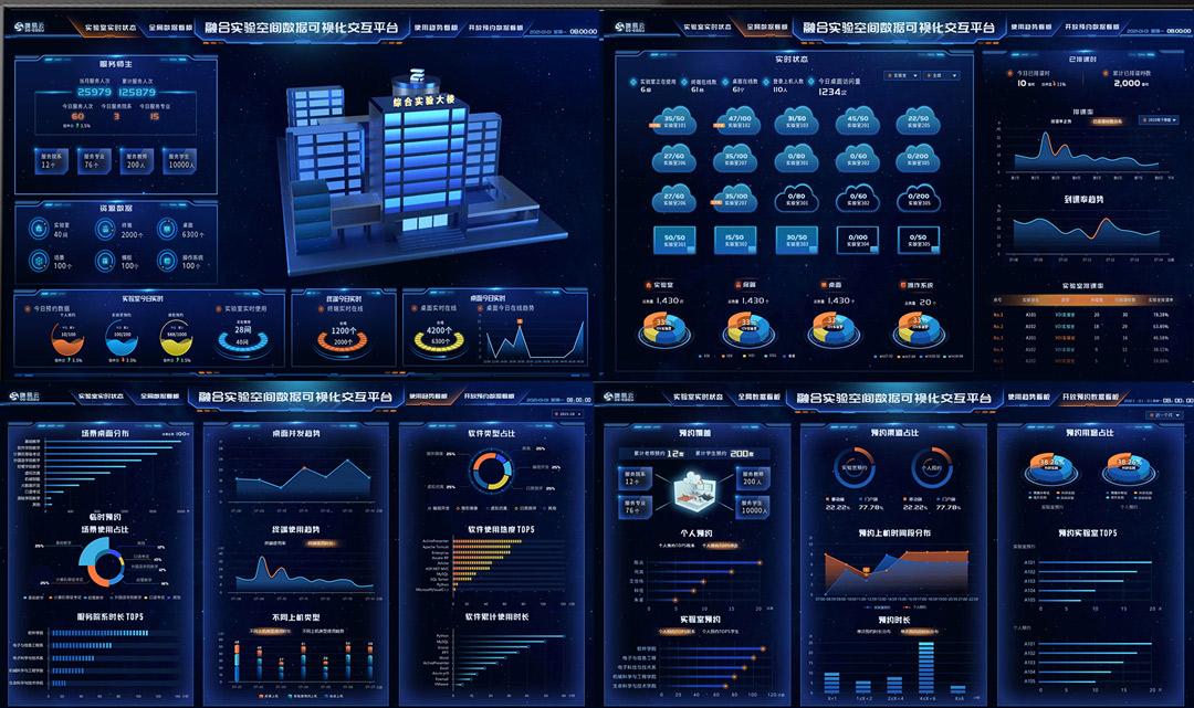 融合實(shí)驗(yàn)空間數(shù)據(jù)可視化交互平臺(tái):承載全校實(shí)驗(yàn)室各類數(shù)據(jù),通過(guò)計(jì)算分析提供可視化數(shù)據(jù)動(dòng)態(tài)展示服務(wù),直觀呈現(xiàn)學(xué)校信息化建設(shè)水平及管理狀態(tài)。