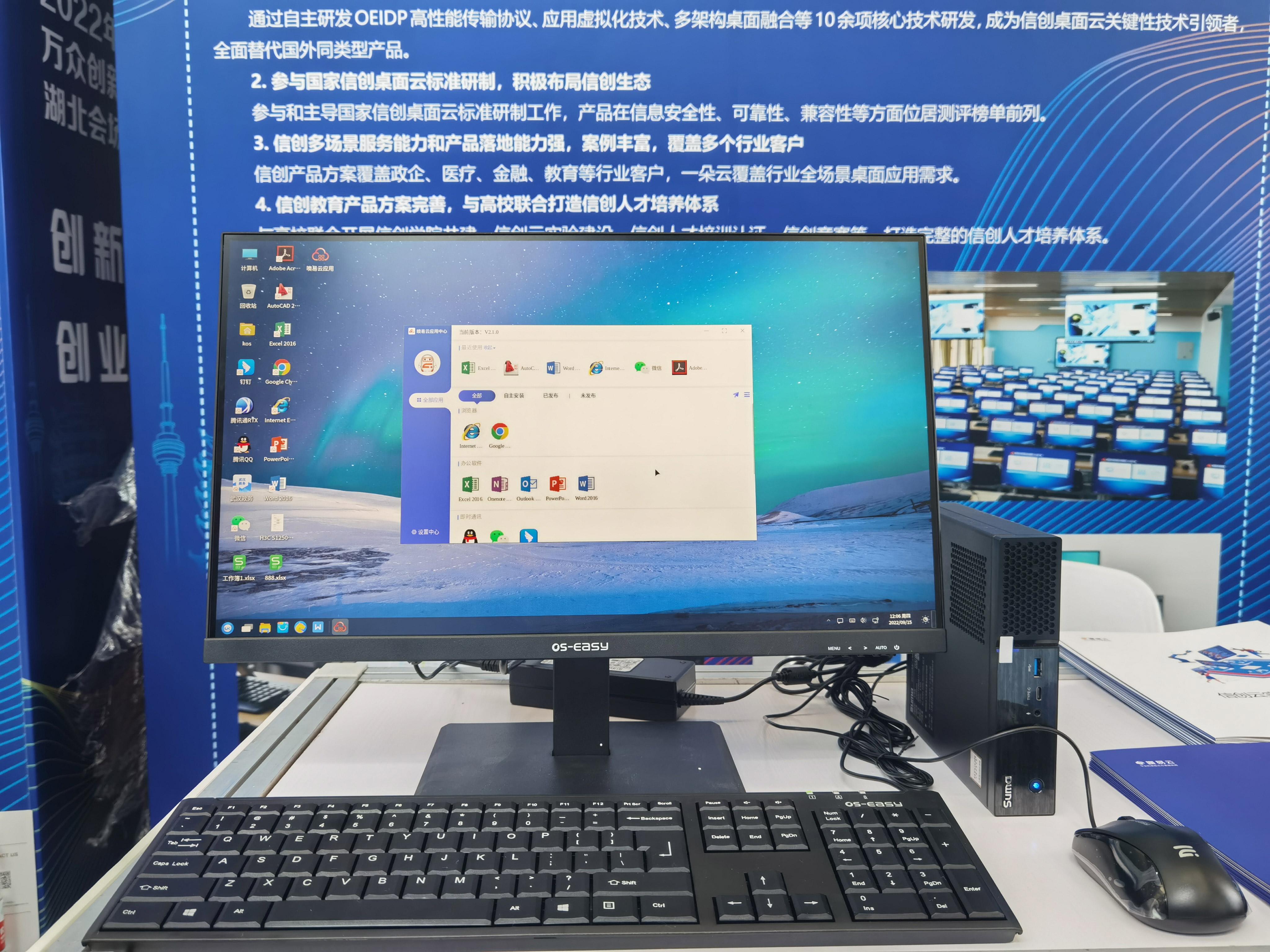 噢易云作為教育桌面云領(lǐng)先品牌和湖北省武漢東湖高新區(qū)優(yōu)秀企業(yè)代表,在全國雙創(chuàng)活動周湖北會場創(chuàng)新創(chuàng)業(yè)成果展上全面展示信創(chuàng)多架構(gòu)融合桌面云、信創(chuàng)云實(shí)驗(yàn)室等產(chǎn)品方案,并重點(diǎn)展出噢易云終端乾Q100等硬件產(chǎn)品,以多項(xiàng)硬核科技產(chǎn)品、前沿技術(shù)展示雙創(chuàng)成果,為參會者呈現(xiàn)一場精彩的教育信息化盛會。