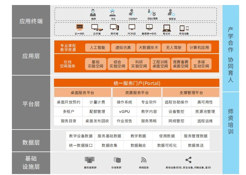 (客戶詳細咨詢云終端擴展支持VDI/IDV架構桌面運行情況、圖形技術拓展能力)4 智慧校園線上實驗空間服務解決方案