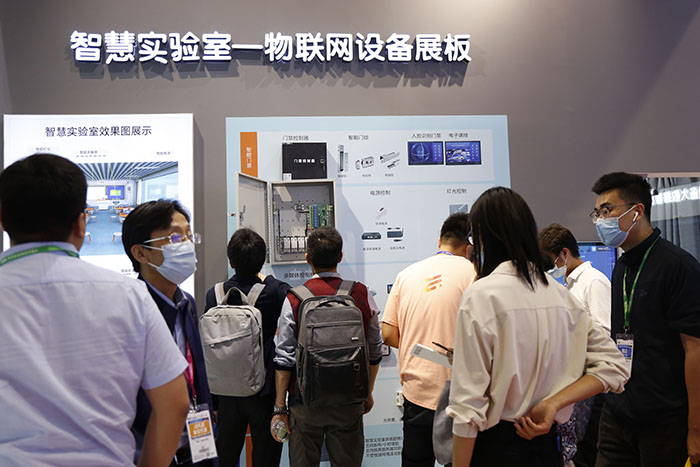 噢易云新基建新一代智慧實驗室解決方案,基于“新基建”融合基礎設施和創(chuàng)新基礎設施建設內(nèi)容,將物聯(lián)網(wǎng)、云計算、大數(shù)據(jù)、移動互聯(lián)網(wǎng)等新信息技術,應用到計算機實驗室的基礎設施建設、管理和服務各個方面。通過物聯(lián)網(wǎng)技術將實驗室的電源、門禁、空調(diào)、攝像頭、各類傳感器進行智慧物聯(lián),通過技術的融合創(chuàng)新,改變了上課、學習的方式,構建自動化、無人化、全面感知互聯(lián)的實驗教學空間。 在智慧實驗室體驗區(qū),來自全國各地近1000名老師近距離體驗產(chǎn)品,交流技術,現(xiàn)場場面火爆!