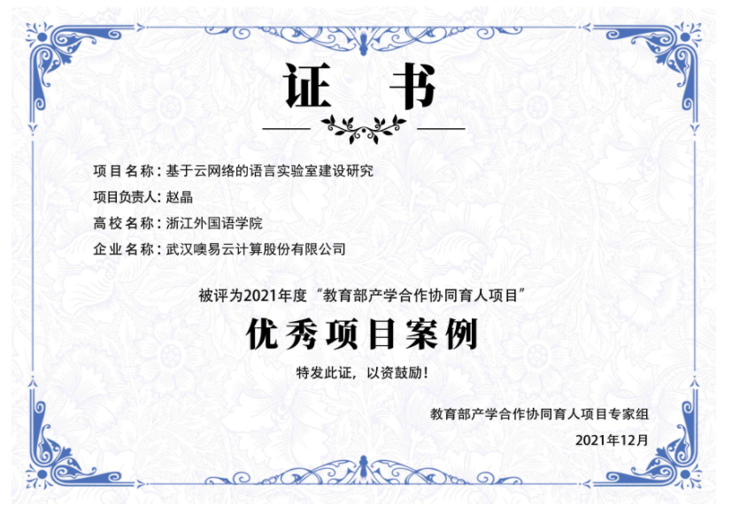 此次會(huì)議上,“2021年度教育部產(chǎn)學(xué)合作協(xié)同育人項(xiàng)目?jī)?yōu)秀項(xiàng)目案例”重磅發(fā)布,由噢易云支持建設(shè)的2個(gè)項(xiàng)目獲評(píng)“優(yōu)秀項(xiàng)目案例”獎(jiǎng)項(xiàng),分別是浙江農(nóng)林大學(xué)羅士美老師《融合桌面云實(shí)驗(yàn)教學(xué)一體化平臺(tái)研建項(xiàng)目》、浙江外國(guó)語(yǔ)學(xué)院趙晶老師《基于云網(wǎng)絡(luò)的語(yǔ)言實(shí)驗(yàn)室建設(shè)研究項(xiàng)目》。