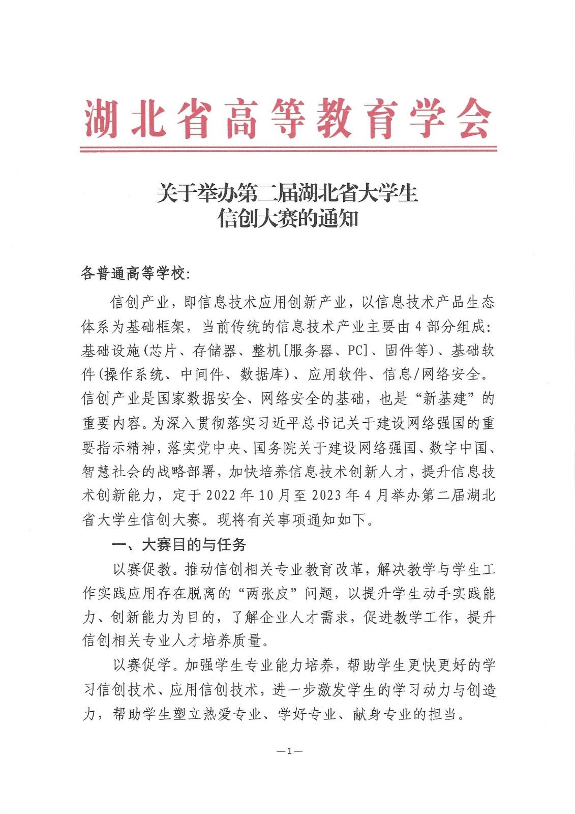 關(guān)于舉辦第二屆湖北省大學(xué)生信創(chuàng)大賽的通知