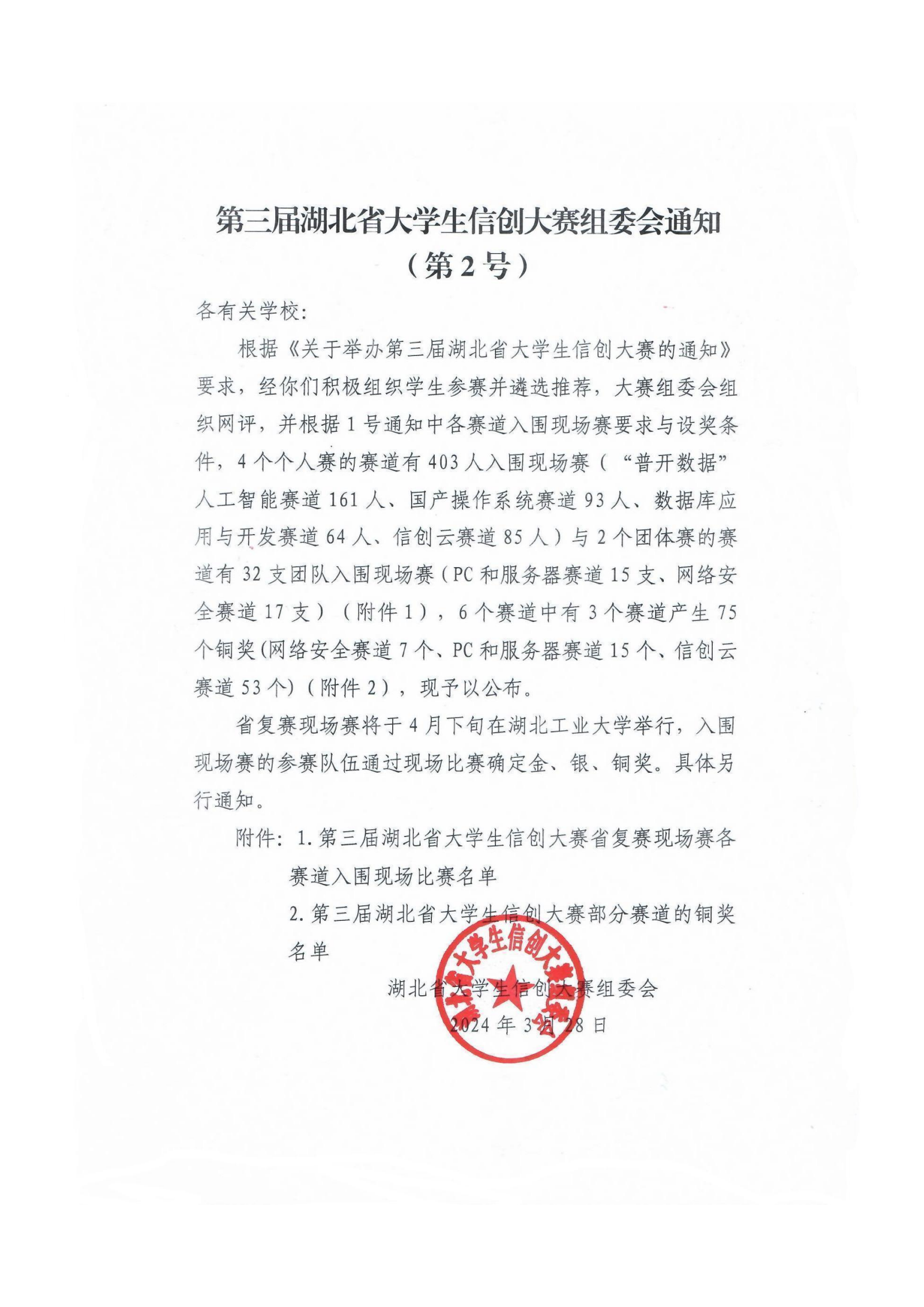 第三屆湖北省大學(xué)生信創(chuàng)大賽組委會(huì)通知(第2號(hào))
