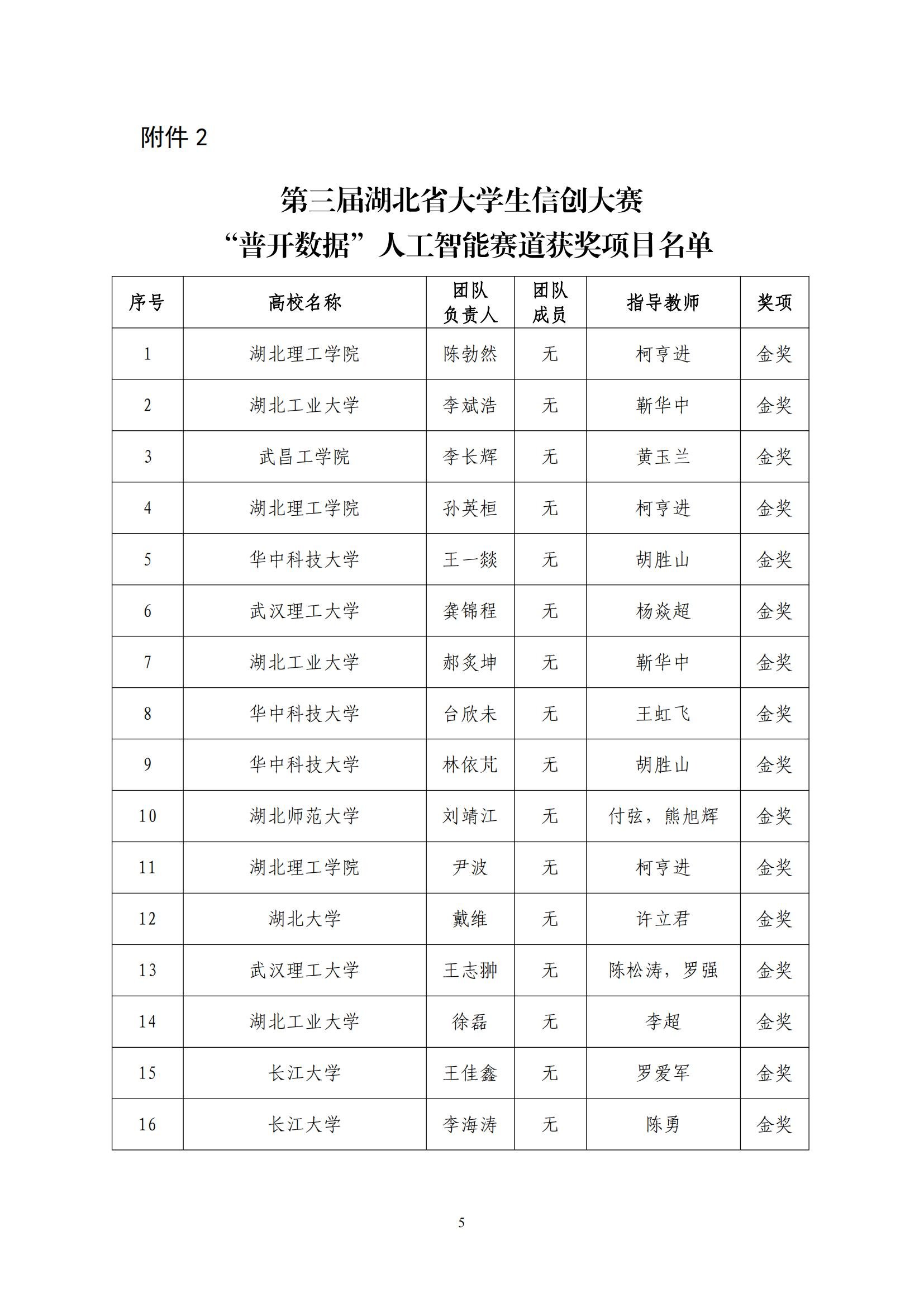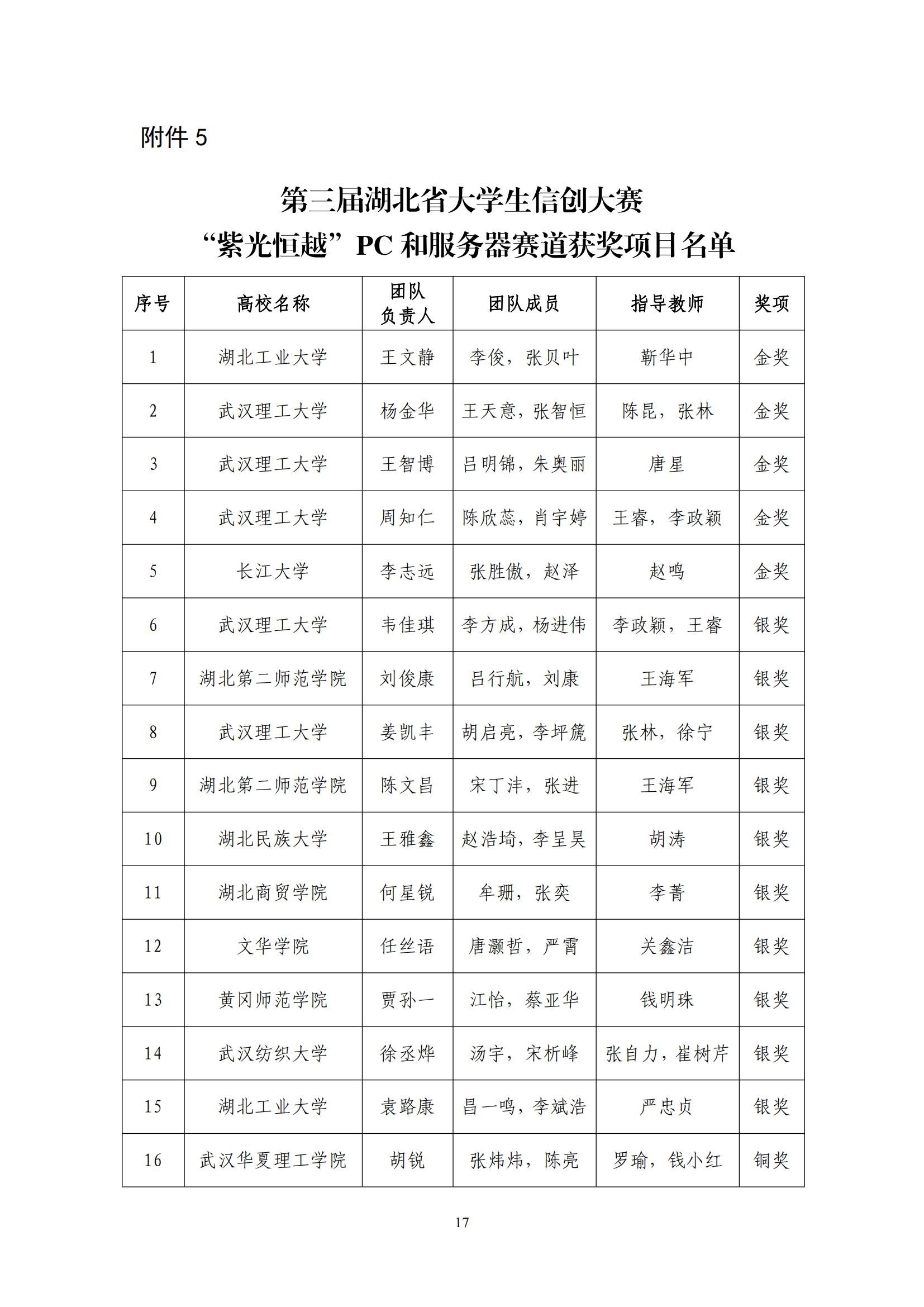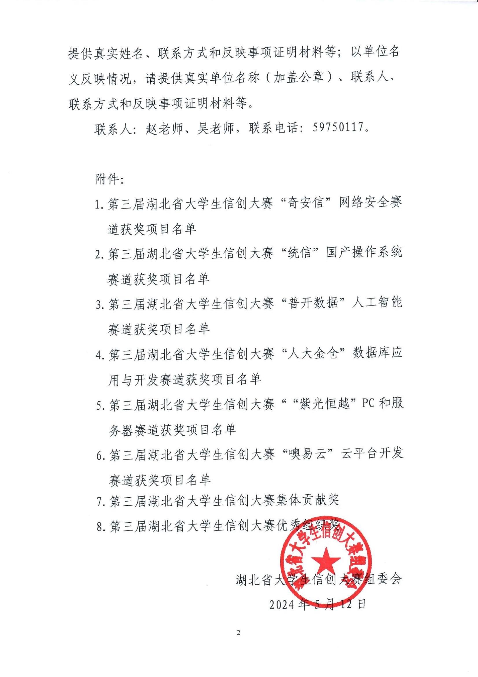 關于對第三屆湖北省大學生信創(chuàng)大賽獲獎名單進行公示的通知(第5號)
