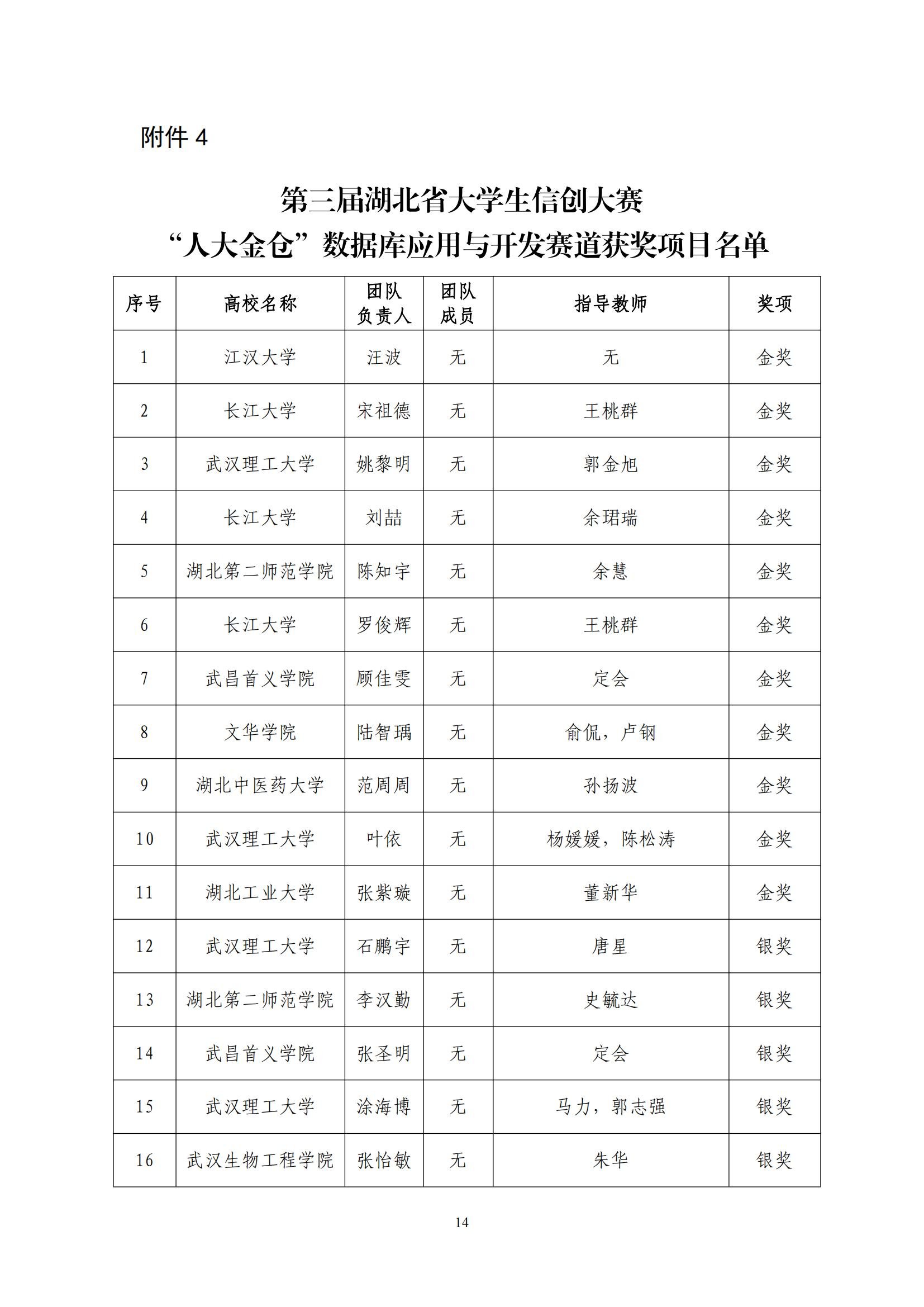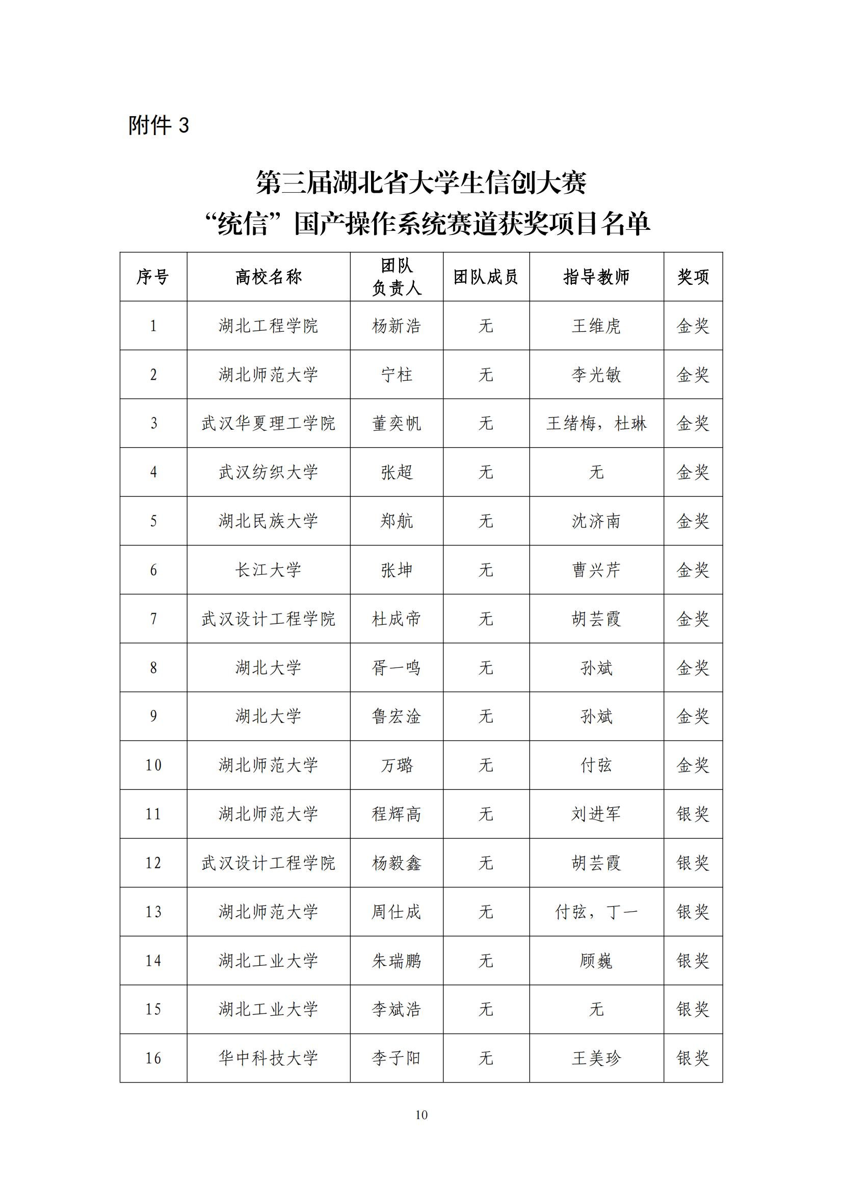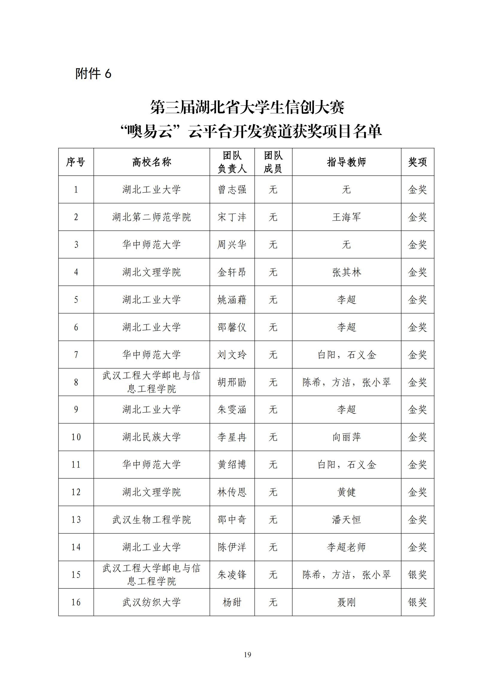 關于對第三屆湖北省大學生信創(chuàng)大賽獲獎名單進行公示的通知(第5號)