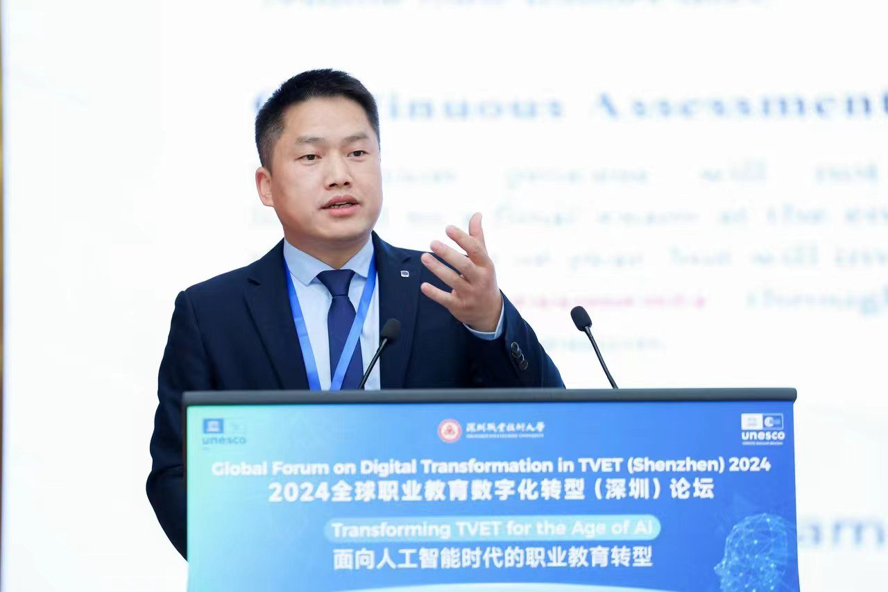 10月22日至23日, 2024全球職業(yè)教育數(shù)字化轉(zhuǎn)型(深圳)論壇在深圳職業(yè)技術(shù)大學(xué)(以下簡(jiǎn)稱“深職大”)成功舉行。本次論壇由聯(lián)合國(guó)教科文組織國(guó)際職教中心(UNESCO-UNEVOC)、聯(lián)合國(guó)教科文組織東亞多部門(mén)地區(qū)辦事處及深職大共同主辦。來(lái)自35個(gè)國(guó)家的政府部門(mén)、教育機(jī)構(gòu)、行業(yè)企業(yè)和國(guó)際組織的近130位代表出席論壇,聚焦“面向人工智能時(shí)代的職業(yè)教育轉(zhuǎn)型”,共同探討全球職業(yè)教育數(shù)字化治理與人工智能技術(shù)融合的路徑,分享各國(guó)在數(shù)字能力建設(shè)、課程改革及科技助力校企合作方面的最佳實(shí)踐,推動(dòng)構(gòu)建一個(gè)更具韌性和活力的全球職業(yè)教育體系。噢易云作為聯(lián)合國(guó)教科文組織戰(zhàn)略合作伙伴亮相此次大會(huì),噢易云國(guó)際市場(chǎng)總監(jiān)邢太全發(fā)表主題演講,針對(duì)數(shù)字場(chǎng)景下的職教創(chuàng)新,包括智慧教室資源庫(kù)、線上線下實(shí)驗(yàn)教學(xué)新模式、以及海外豐富的落地案例實(shí)踐,和與會(huì)代表分享交流。