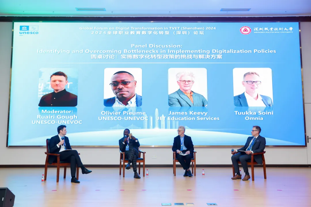 本次論壇由聯(lián)合國(guó)教科文組織國(guó)際職教中心(UNESCO-UNEVOC)、聯(lián)合國(guó)教科文組織東亞多部門(mén)地區(qū)辦事處及深職大共同主辦。來(lái)自35個(gè)國(guó)家的政府部門(mén)、教育機(jī)構(gòu)、行業(yè)企業(yè)和國(guó)際組織的近130位代表出席論壇,聚焦“面向人工智能時(shí)代的職業(yè)教育轉(zhuǎn)型”,共同探討全球職業(yè)教育數(shù)字化治理與人工智能技術(shù)融合的路徑,分享各國(guó)在數(shù)字能力建設(shè)、課程改革及科技助力校企合作方面的最佳實(shí)踐,推動(dòng)構(gòu)建一個(gè)更具韌性和活力的全球職業(yè)教育體系。