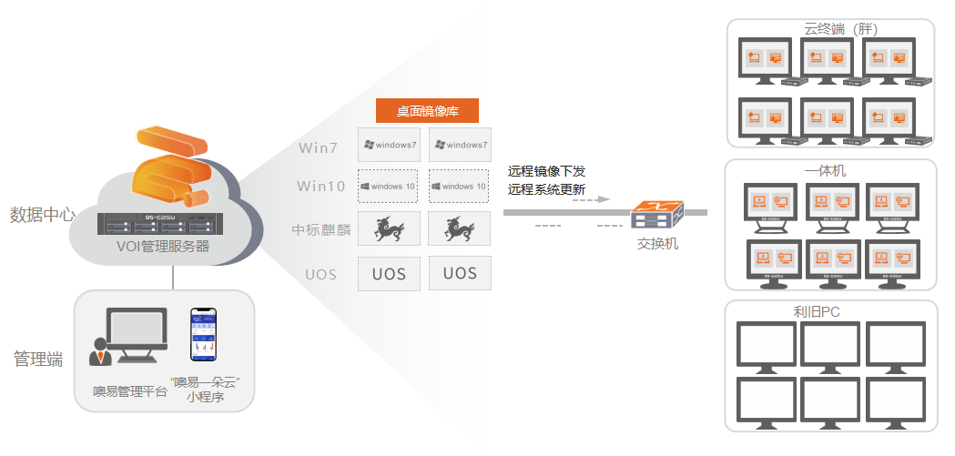 噢易云教室系統(tǒng)可以實現(xiàn)桌面環(huán)境的隨時更新,不影響教學(xué)過程;管理員只需要對一臺虛擬仿真客戶端進行更新(安裝應(yīng)用軟件或修改操作系統(tǒng)),其他客戶端重啟一次即可馬上使用更新桌面環(huán)境,且只更新變化的數(shù)據(jù),大幅度提升更新效率;鏡像分層:可實現(xiàn)個人桌面鏡像分層技術(shù),可直接在管理平臺設(shè)置分層空間大小,用于存儲用戶系統(tǒng)盤產(chǎn)生的數(shù)據(jù),個人桌面模板統(tǒng)一更新時,可保留個性化教學(xué)辦公數(shù)據(jù)。