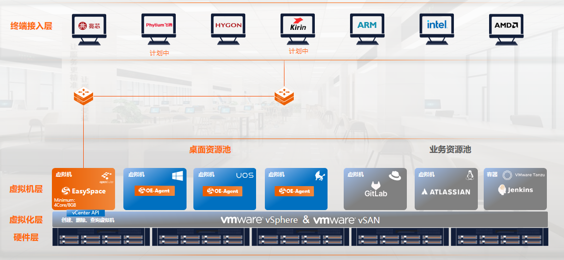 面向大型企業(yè)、央國(guó)企、金融行業(yè)等私有云或混合云客戶,在個(gè)人辦公,研發(fā),設(shè)計(jì)等桌面使用場(chǎng)景,接管第三方云平臺(tái)資源。