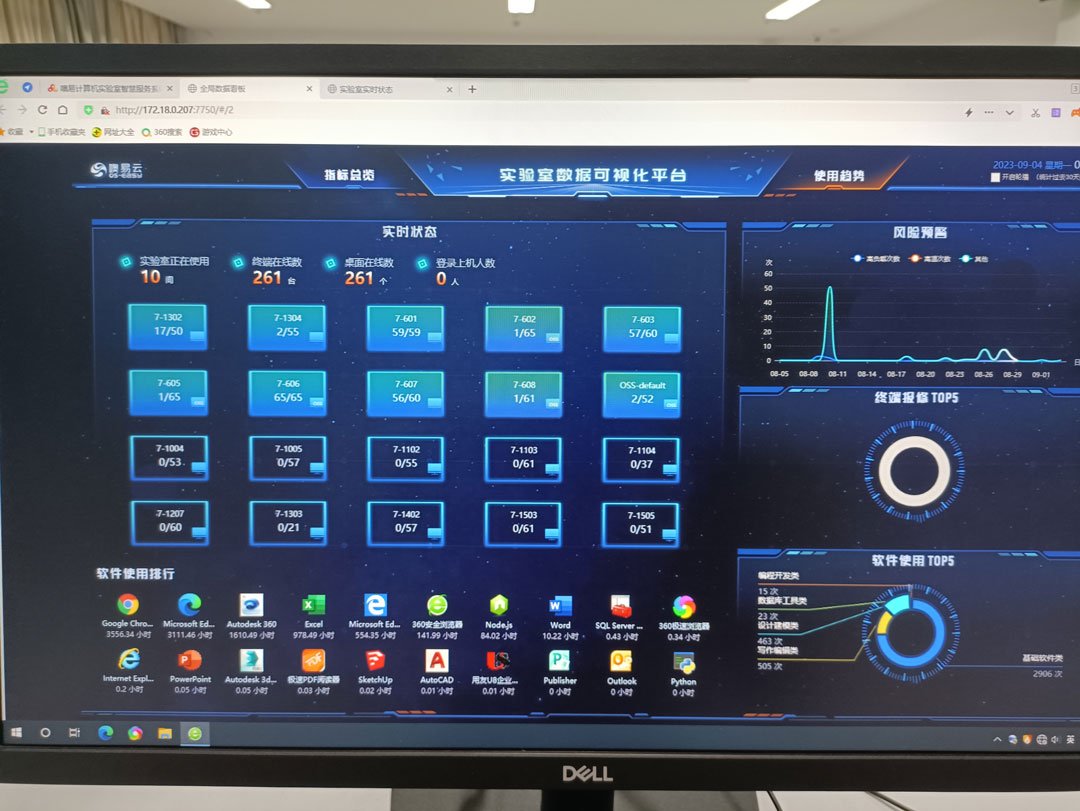 4、伴隨式數據采集分析,自動化統(tǒng)計實驗室占用率、終端利用率、終端能耗、硬件風險、報修分析、活動場次等,量化使用效能,讓申請改造更有依據;
