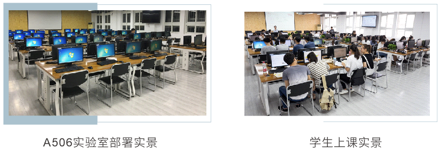采用4臺(tái)高性能云服務(wù)器,共部署了A506的80點(diǎn)信息管理基礎(chǔ)實(shí)驗(yàn)室和B403的25點(diǎn)物流管理實(shí)驗(yàn)室,終端均配備了X86架構(gòu)云終端