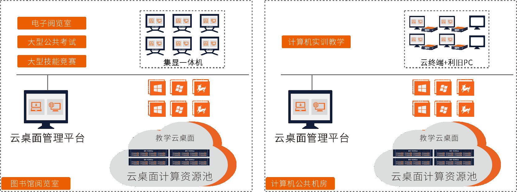 - 公共機(jī)房、電子閱覽室融合管理,統(tǒng)一運(yùn)維零負(fù)擔(dān)