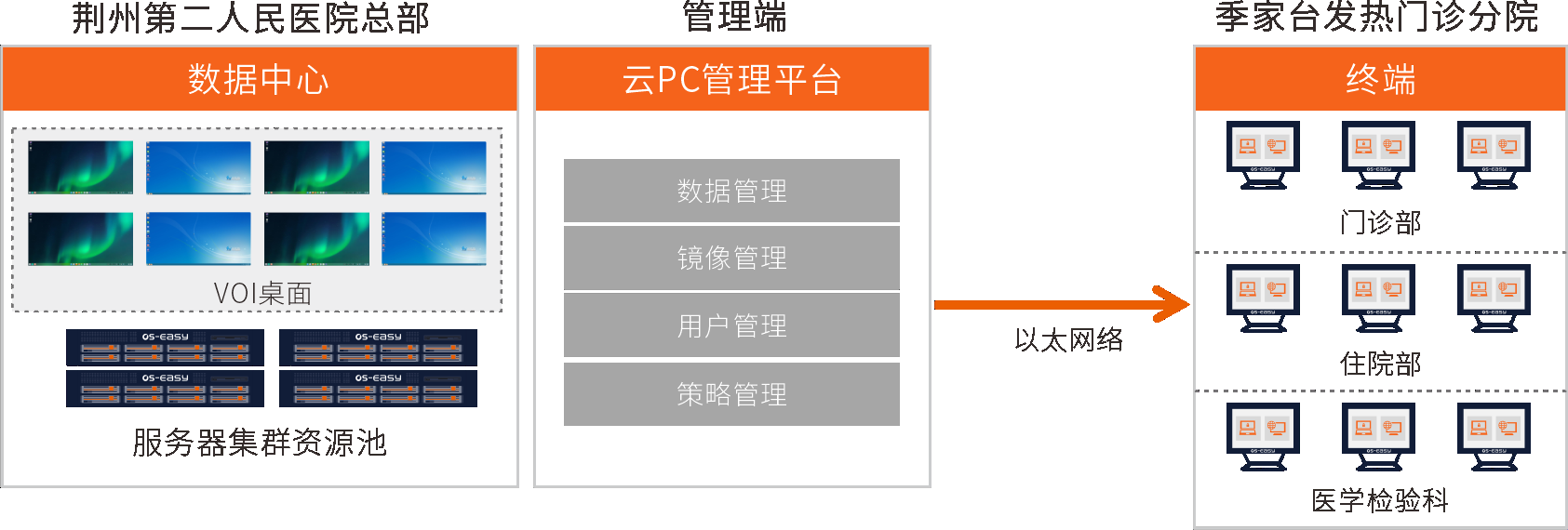 荊州市第二人民醫(yī)院為了應(yīng)對(duì)新冠疫情,對(duì)季家臺(tái)分院進(jìn)行改造,改造為專用的發(fā)熱門診。發(fā)熱門診在疫情防控期間工作量大、風(fēng)險(xiǎn)高,亟需改造終端,實(shí)現(xiàn)智能化、無(wú)接觸式的管理方式。噢易云為荊州二院提供了40點(diǎn)的噢易云PC系統(tǒng),實(shí)現(xiàn)用戶遠(yuǎn)程運(yùn)維的需求。