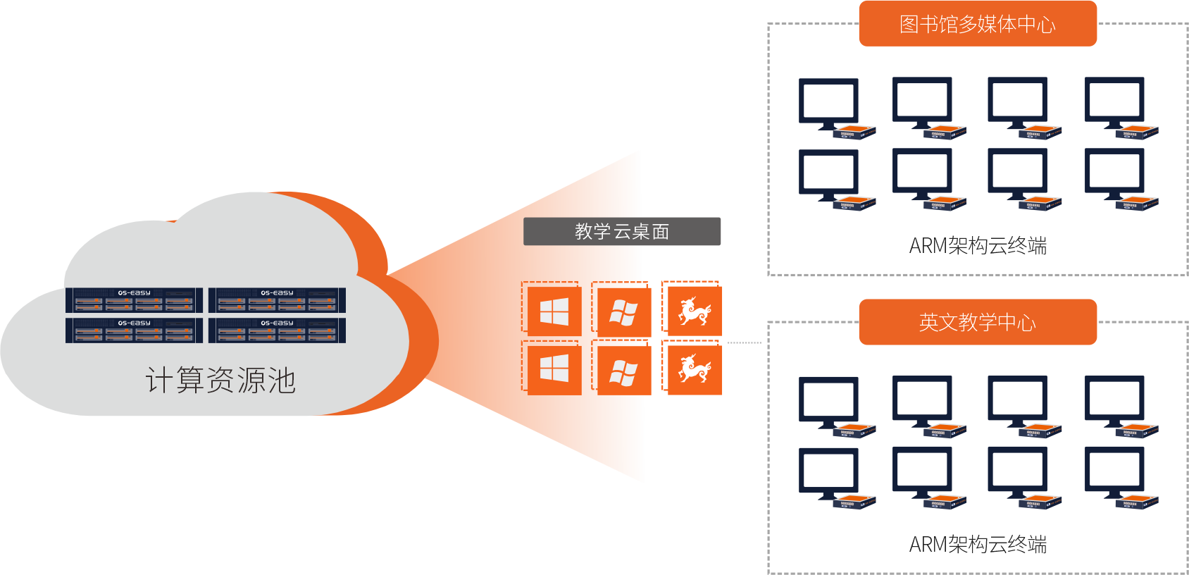 - 全英文云桌面系統(tǒng),滿足海外學(xué)校教學(xué)需求