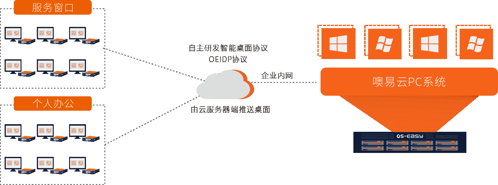 河北省省直住房資金管理中心攜手噢易云,通過(guò)整體規(guī)劃,部署40點(diǎn)噢易云PC系統(tǒng),滿(mǎn)足資金管理中心的窗口業(yè)務(wù)以及后端人員的辦公使用需求。