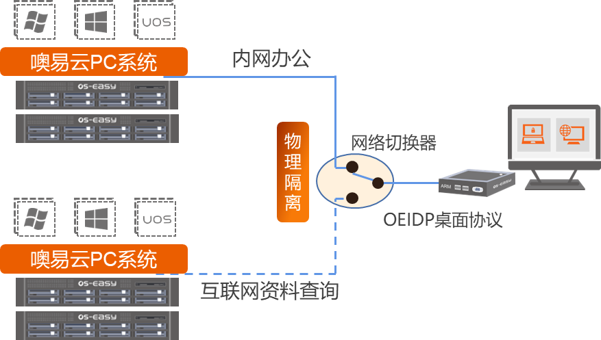 方案一:VDI雙網(wǎng)雙桌面物理隔離