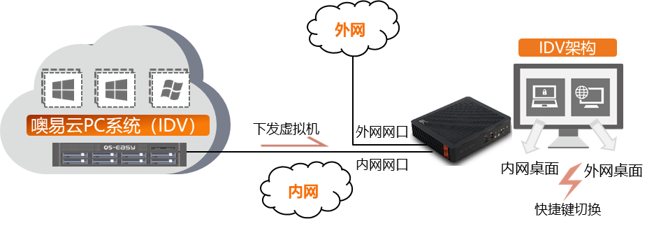 圖 IDV架構(gòu)雙網(wǎng)口終端內(nèi)外網(wǎng)業(yè)務(wù)隔離