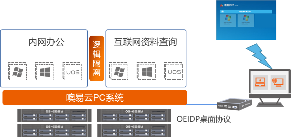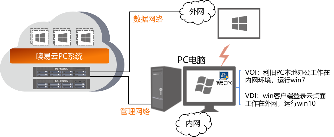 2、利舊PC+VDI外網(wǎng)桌面隔離