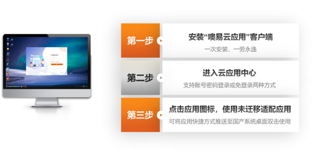 在工信部等主管部門的指導(dǎo)下,噢易云利用虛擬化&容器技術(shù),推出全新噢易云應(yīng)用解決方案,僅需3步,輕松解決業(yè)務(wù)應(yīng)用國產(chǎn)化遷移適配難題。