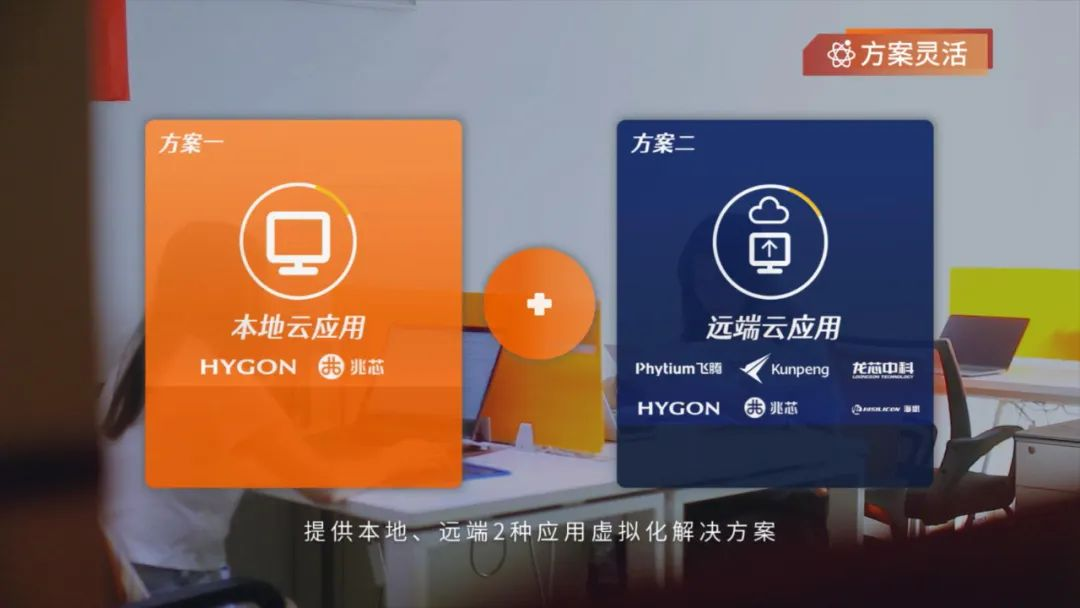 噢易云應(yīng)用適配主流國產(chǎn)芯片和操作系統(tǒng),并根據(jù)用戶使用國產(chǎn)芯片的情況,提供本地云應(yīng)用和遠端云應(yīng)用2種應(yīng)用虛擬化解決方案,滿足用戶多場景應(yīng)用需求