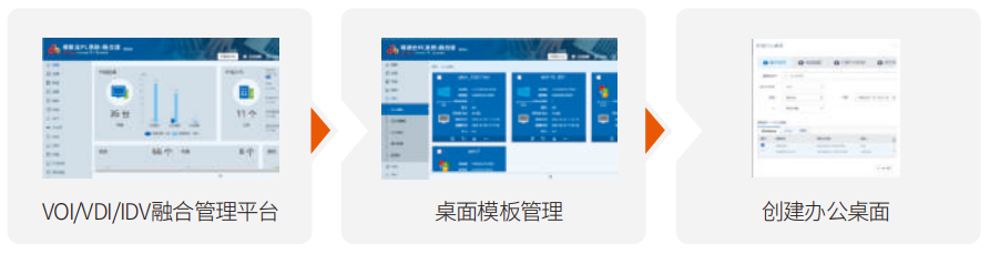 管理運(yùn)維在云端:IT管理者以Web方式登錄融合管理平臺(tái),進(jìn)行批量桌面定制,完成操作系統(tǒng)安裝、日常軟件更新、補(bǔ)丁升級(jí)等運(yùn)維工作;支持跨區(qū)域位置分散的異構(gòu)終端進(jìn)行統(tǒng)一管理。