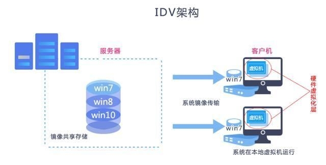 針對(duì)VDI的先天缺陷,英特爾提出了IDV概念----智能桌面虛擬化(Intelligent Desktop Virtualization,IDV),采用集中存儲(chǔ)、分布運(yùn)算的構(gòu)架,他虛擬桌面的運(yùn)行趕回了終端的本地電腦上運(yùn)行,系統(tǒng)鏡像統(tǒng)一存放到服務(wù)器端,配置并下發(fā)到終端機(jī)器硬盤上,終端通過虛擬機(jī)運(yùn)行桌面,不再對(duì)網(wǎng)絡(luò)過度依賴,無需大量的圖像傳輸,支持系統(tǒng)離線運(yùn)行,同樣可以統(tǒng)一管理終端桌面系統(tǒng),雖然相對(duì)VDI有個(gè)很大改善,但是要求本地硬件必須統(tǒng)一,必須支持VT等帶外特性,另外由于沒有脫離虛擬機(jī)概念,性能和兼容性還是沒有辦法和傳統(tǒng)的PC機(jī)器相比。