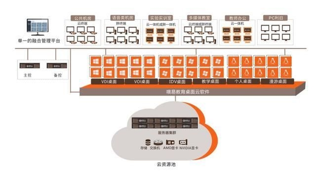 噢易教育桌面云–融合版是一套融合VDI 、VOI、IDV三種桌面技術(shù)架構(gòu)的新型桌面云產(chǎn)品,專為教育場(chǎng)景量身定制開發(fā),面向不同教學(xué)使用場(chǎng)景需求,交付不同桌面架構(gòu)的教學(xué)環(huán)境,適用于公共機(jī)房、實(shí)訓(xùn)室、3D機(jī)房、語音教室、多媒體教室、圖書館、教師辦公、各類考試等大規(guī)模、復(fù)雜、混合場(chǎng)景。實(shí)現(xiàn)5個(gè)層次的融合,通過單一的融合管理平臺(tái)對(duì)機(jī)房、終端設(shè)備、桌面進(jìn)行統(tǒng)一管理和集中運(yùn)維,讓教學(xué)更順暢,學(xué)習(xí)更高效,管理更輕松。