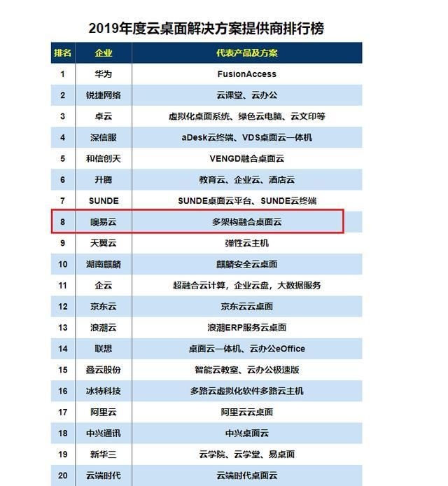 2019《互聯(lián)網(wǎng)周刊》&eNet研究院的桌面云排行中,噢易云排名第8。