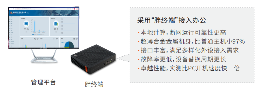 如今,像老李這樣在家門口看病、醫(yī)生在云端會(huì)診的圖景已不再是個(gè)例,“十三五”期間,全國(guó)在567個(gè)縣積極推進(jìn)縣域醫(yī)療共同體建設(shè),目前已建成縣域醫(yī)療共同體4000 個(gè),縣域內(nèi)就診率達(dá)到94%。縣域醫(yī)共體建設(shè)優(yōu)化配置人、財(cái)、物,推動(dòng)縣域優(yōu)質(zhì)醫(yī)療資源的共享互通,首先要實(shí)現(xiàn)縣域內(nèi)信息系統(tǒng)互聯(lián)互通。借助桌面云技術(shù),加快區(qū)域終端一體化管理,推進(jìn)分級(jí)診療落地,是解決醫(yī)療資源分配不均、基層百姓看病難等問(wèn)題的重要突破口,下沉優(yōu)質(zhì)醫(yī)療資源,提升基層醫(yī)療服務(wù)能力。