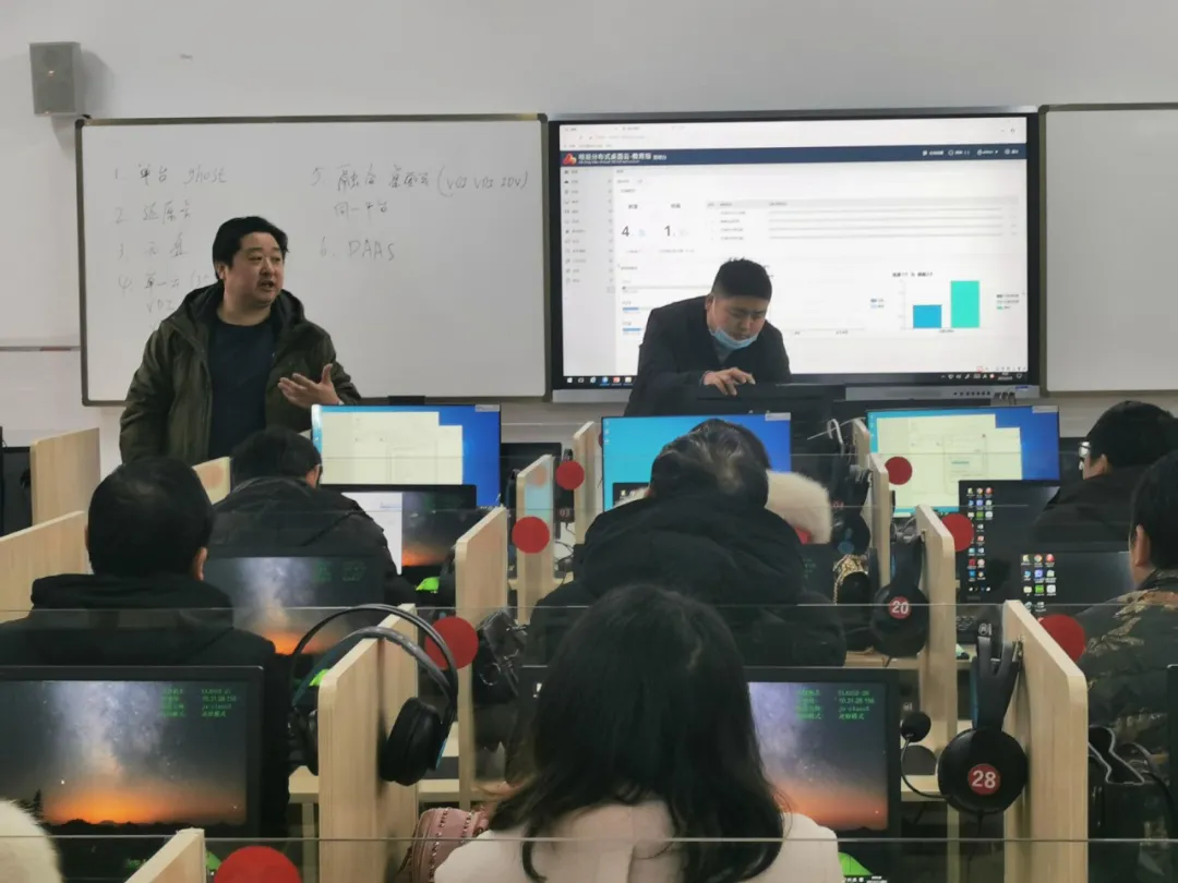 長(zhǎng)泰第一中學(xué)新校區(qū)共建設(shè)102點(diǎn) 噢易云教室系統(tǒng) ,2臺(tái)服務(wù)器,2套多媒體廣播教學(xué)軟件并交付上百個(gè)云桌面分布于兩間公共機(jī)房,用于日常教學(xué)。